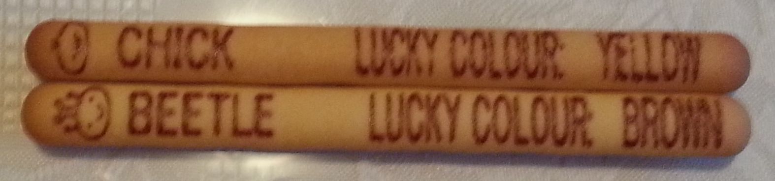 Chick – lucky colour; yellow / Beetle – lucky colour: brown. Ok, now you guys aren’t even trying. What happened? The copywriter was sick that day and the fortune cookie guy had to sub in? Beetles come in more colours than you can poke a stick at, why limit it to the most ugly one? And how can I have two lucky colours? Is there a limit to how many lucky colours I can have? I am beginning to have serious doubts about just how lucky the colour yellow is!